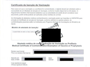 Modelo de certificado de isenção de vacinação contra a febre amarela.