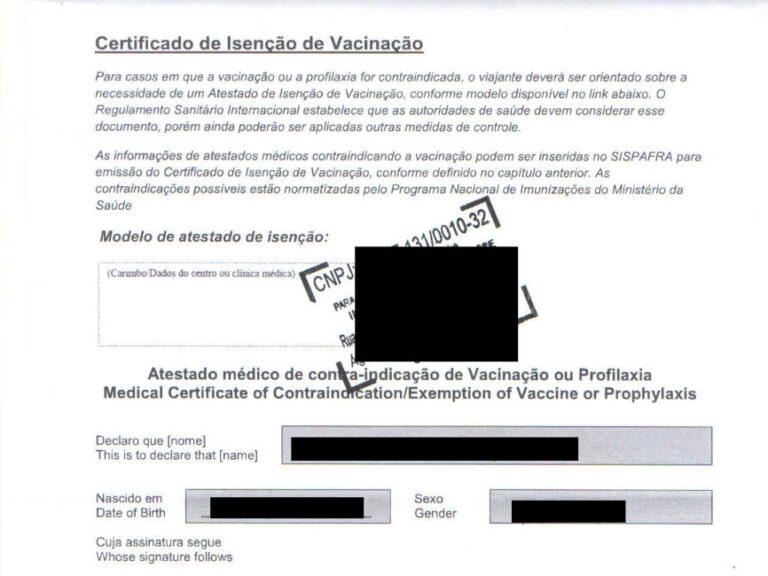 Neste caso, procure um profissional médico para avaliação clínica do risco da vacinação. Caso o médico mantenha a contraindicação, informe sobre sua viagem e solicite um atestado de isenção de vacinação em espanhol ou inglês.