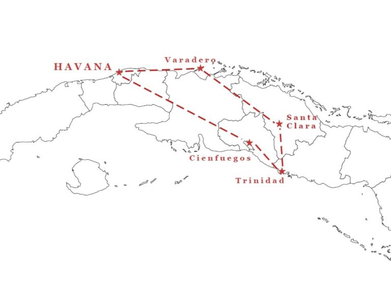 • Caminhada contemplativa pelo centro histórico de Cienfuegos, conhecida como “a pérola do Caribe”, uma das cidades mais charmosas e encantadoras na ilha. Fundada por colonizadores franceses no século XIX, o estilo arquitetônico típico da cidade contrasta com a arquitetura espanhola predominante na ilha.